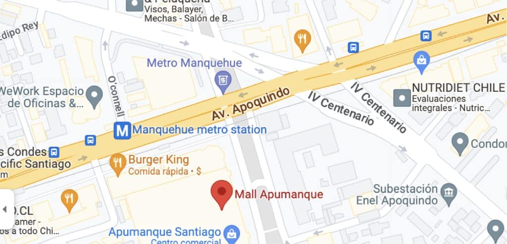 Avenida Manquehue Sur N°31 Centro comercial Apumanque Local 411, primer piso.