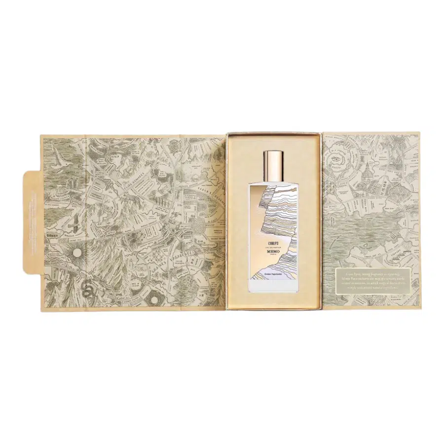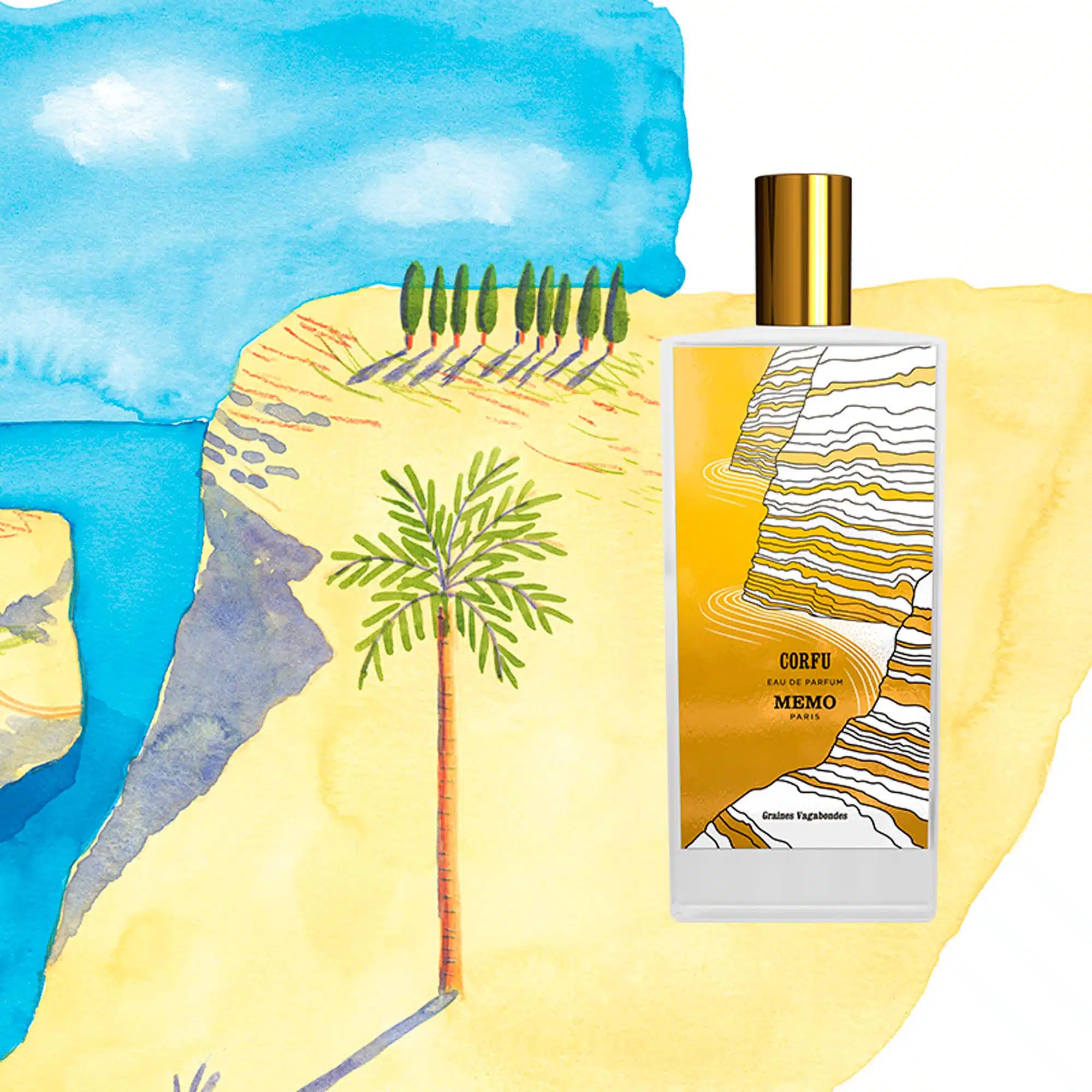 Un viaje al corazón de Grecia, en la isla de Corfú. El sol, en su apogeo, calienta con sus rayos el aroma de bergamota, mandarina y grosella negra. Dejando un velo dorado sobre la piel, acompaña esta estancia con notas de frambuesa, albahaca y ruibarbo. Este aroma, que invita a sumergirse en las aguas turquesas de la isla, es un bouquet floral de iris, jazmín y lirio de los valles sobre un cálido fondo de musgo y pachulí.