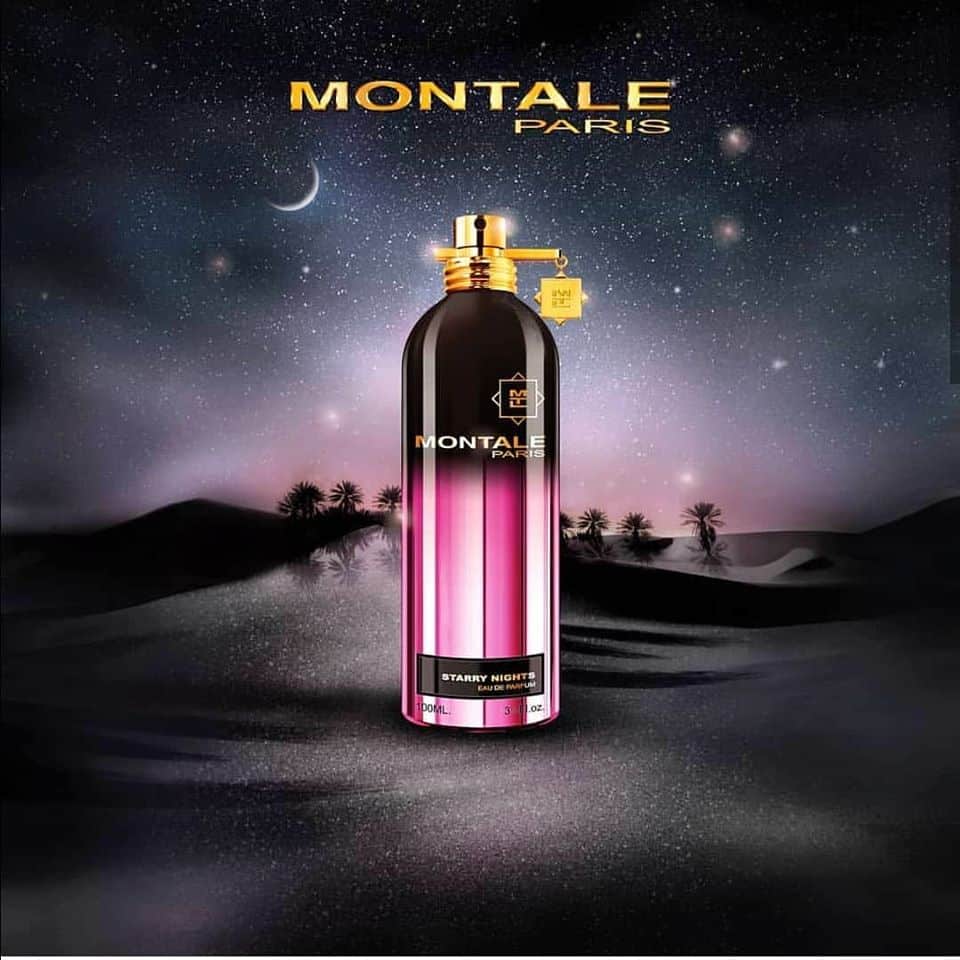 Perfume Montale Starry Nights una fragancia que brilla como una estrella en el cielo, donde la fresca bergamota de Calabria ilumina el camino a un corazón de flores, la rosa de Bulgaria y el jazmín de Egipto, facultan las notas orientales del Patchouly de Sumatra, y nos dejan una estela cálida de sensual almizcle blanco y notas en polvo.