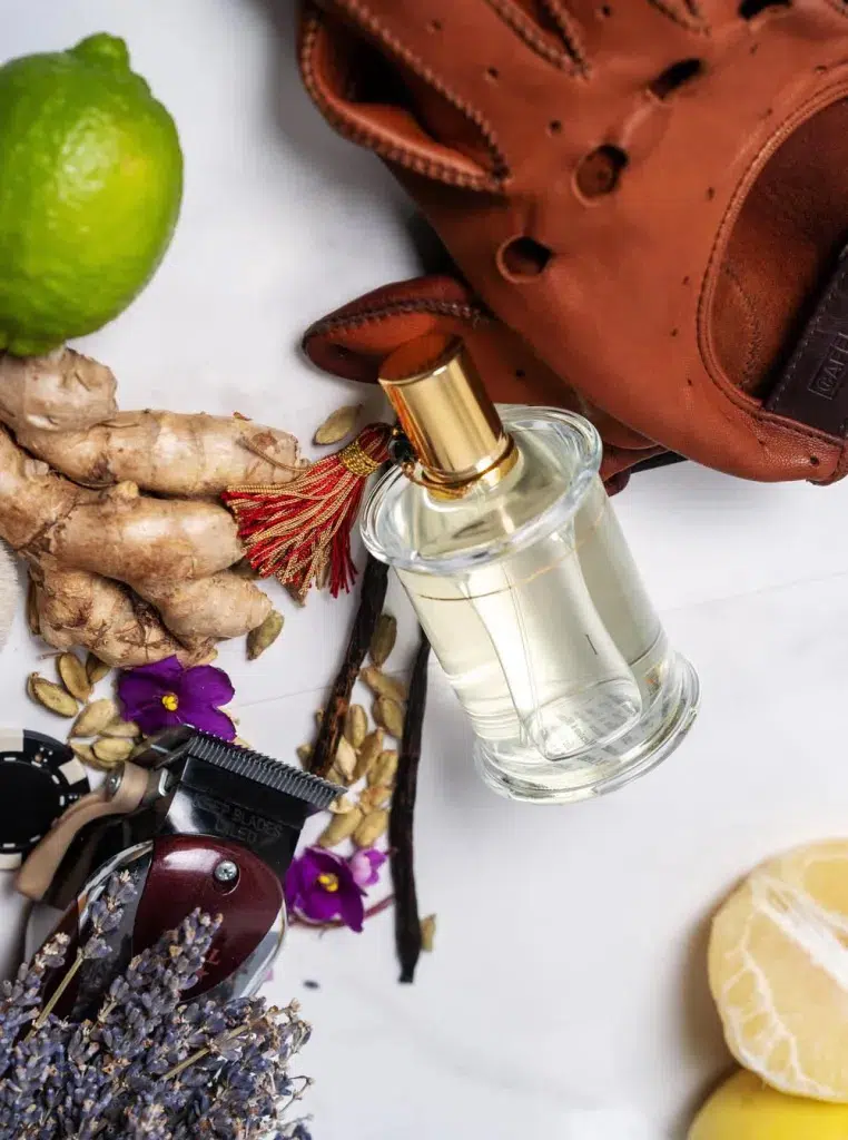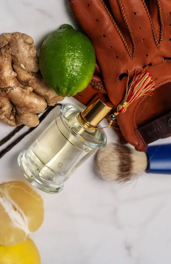 Notas de corazón: Hojas de tomillo blanco, granos de cardamomo, lavanda, gengibre