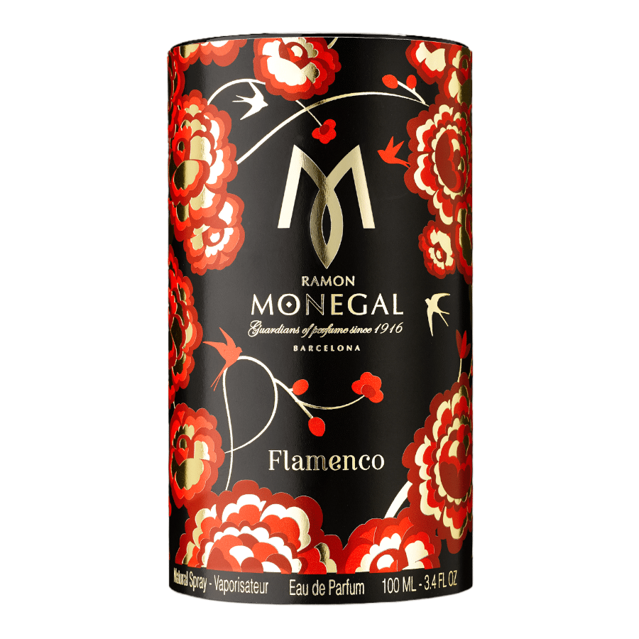 “Flamenco” es mi manifiesto olfativo, mi origen, mi herencia…es alma de España, seña de identidad, símbolo cultural y esencia del sur. Emoción embriagadora interpretada en cante, guitarra y baile, sentimiento que imagino presente bajo el embrujo magnético de una noche en la Alhambra. Impregnado de este sentimiento, mi reto para acercarme al arte, es hacerlo trascender en perfume: Como un abanico, de amplio lenguaje y ondulante ritual, arranca y muestra su fortaleza entrelazando maderas de cedro del atlas y pino mediterráneo. Como una flor, despliega en sus pétalos, el júbilo del azahar en Sevilla, la pasión de la rosa roja en Damasco y la sensualidad irresistible del jazmín bajo la luna. Como un toque de guitarra, vuela al aire, entre lunares de frambuesa y faralaes de azafrán. Y como en un éxtasis final, encuentra el duende en una combinación de néctar de ámbar, voluptuoso iris y almizcle narcótico.