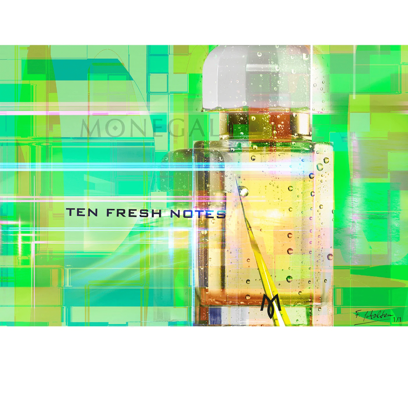 Dicen que con cinco notas se consigue la ligereza de un perfume, pero yo quería doblar la apuesta. Y, desafiando los cánones de la perfumería, pedía frescura por intensidad. Así que realicé los clásicos acordes de bergamota y lima con balsamita y neroli, dándoles la intensidad del musgo de roble y el ámbar. Porque más es siempre más.