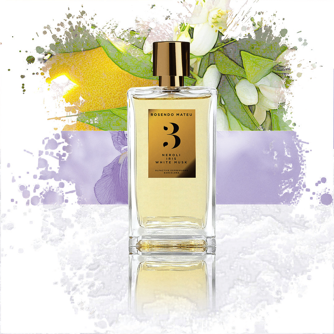 The First Collection, donde cada creación se declina en torno a tres ingredientes principales sublimados: No. 3, un homenaje al neroli, el iris y el almizcle blanco. Como un ramo recién compuesto, el aroma chispeante del neroli tunecino se extiende instantáneamente, mezclándose con la fruta de la bergamota de Calabria. El iris italiano aporta carácter a este corazón floral con su faceta coriácea, todo sobre un fondo de almizcle blanco casi animal, envuelto por notas golosas y sensuales de tonka y vainilla, para una fragancia casi carnal.