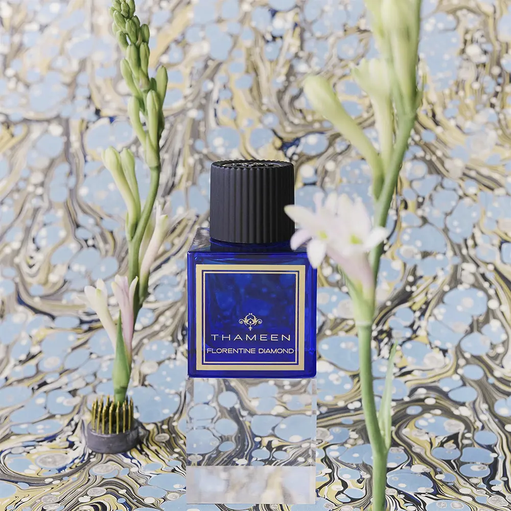 Florentine Diamond es una fragancia seductora y sofisticada que entrelaza la embriagadora tuberosa con ricos matices de cacao. Revela envolventes notas amaderadas con la esencia de la caña de azúcar, evocando un encanto imponente. Esta firma cautivadora se enriquece con el majestuoso oud y el persistente abrazo de la vainilla.